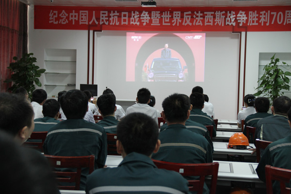 9月3日上午,中共中央、國務院、中央軍委在北京天安門廣場隆重舉行中國人民抗日戰爭暨世界反法西斯戰爭勝利70周年紀念大會閱兵式。經典集團在生產施工任務重、工期緊的情況下,黨支部、工會精心安排,周密部署,組織職工代表80余人收聽收看紀念大會和閱兵式,并作為企業開展愛國主義教育的一項重要舉措。