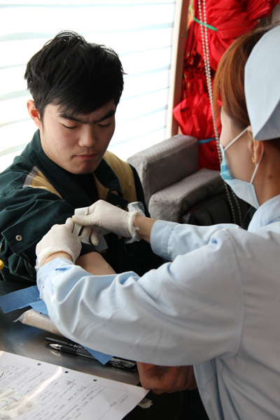 經(jīng)過閱讀學(xué)習(xí)獻(xiàn)血基本常識(shí),填寫登記表,例行體檢幾個(gè)環(huán)節(jié)后,志愿者們按順序登上了獻(xiàn)血車。他們?cè)讷I(xiàn)血時(shí)個(gè)個(gè)積極勇敢,情緒穩(wěn)定,臉上洋溢著自豪的笑容,獻(xiàn)血結(jié)束后,在現(xiàn)場(chǎng)領(lǐng)取了濟(jì)寧市中心血站發(fā)放的無償獻(xiàn)血證。本次獻(xiàn)血活動(dòng)有166名職工自愿報(bào)名參加,其中趙康、吳振興等志愿者更是有多次無償獻(xiàn)血的經(jīng)歷。