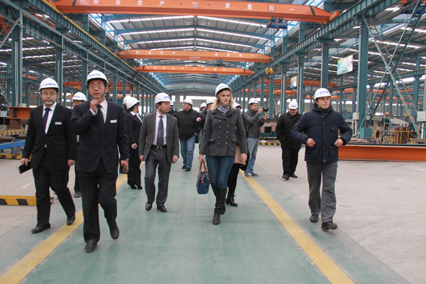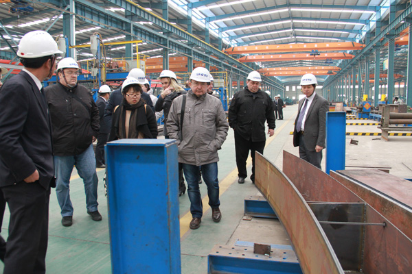 俄羅斯考察團首先參觀了經(jīng)典集團11萬平方米的輕鋼重鋼生產(chǎn)車間,就鋼結(jié)構(gòu)生產(chǎn)工藝、生產(chǎn)流程、技術(shù)設(shè)備、車間管理等方面與經(jīng)典集團高層進行了交流。隨后考察團參觀了經(jīng)典集團文化館、工程中心、設(shè)計院和技術(shù)部,進一步了解了經(jīng)典集團企業(yè)文化、產(chǎn)學(xué)研合作、工程設(shè)計、技術(shù)分解和技術(shù)創(chuàng)新等有關(guān)情況。