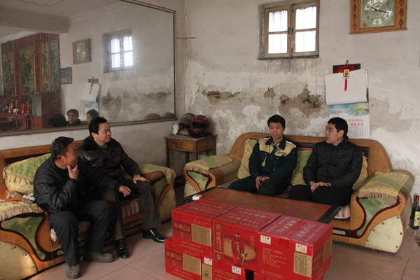 每到一戶,集團領導與職工家屬親切握手,面對面促膝交談,了解職工的家庭收入、子女入學、外出打工等有關情況,送去大米、面粉、食用油等生活物資和600元慰問金苗董事長表示,經典集團將一如既往的關愛職工,特別是困難家庭職工,讓職工感受到公司大家庭的溫暖,切實解決職工的生活困難,使職工全身心投入到公司發展中去。并叮嚀他們如若有什么困難可以提出來,集團公司會傾力幫助,公司就是一個大家庭,每位職工困難,都會牽動整個領導班子的心,集團公司會盡最大努力,想盡一切辦法,最大限度地讓每位困難職工及其家屬過上一個安樂祥和的春節。