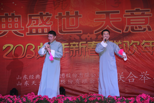 為了迎接2013年新春佳節,給公司全體員工及家人們營造歡樂愉快的節日氣氛,26日,由經典集團公司主辦的主題為2013經典盛世 天意騰飛新春年會,于集團公司宴會廳熱烈舉行。公司各級領導、全體員工及員工家屬近千人共同參加了本次年會。