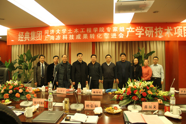 1月18日下午,我公司與同濟大學舉行長期戰略合作協議簽約暨授牌儀式在會議室隆重舉行。集團公司苗樹文董事長與同濟大學土木工程學院李元齊教授簽署“關于經典集團與同濟大學合作意向協議書”,并向李教授頒發了聘書。出席此次會議的有市委常委宣傳部部長初建偉,開發區主任周廣全,發改局劉局長,經信局韓局長,科技局周局長,國土資源局王局長等。會議由上海市科技成果轉化促進會秘書長姚偉民主持。