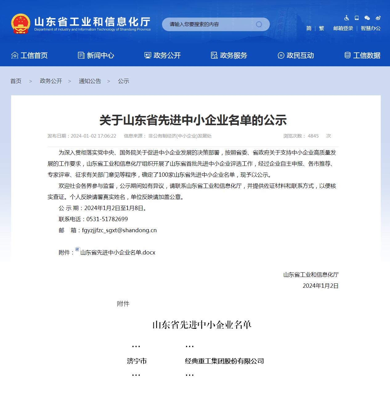 近日,山東省工業(yè)和信息化廳組織開展了山東省先進(jìn)中小企業(yè)評(píng)選工作,最終確定了100家山東省先進(jìn)中小企業(yè)名單,經(jīng)典集團(tuán)成功入選。值得一提的是,這是山東省首次評(píng)選先進(jìn)中小企業(yè),并每三年評(píng)選一次。