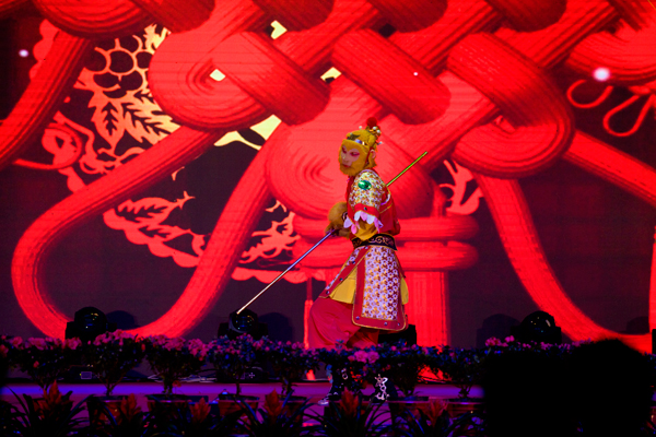 文藝演出在舞蹈《金猴鬧春》中拉開了帷幕,表演者把美猴王孫悟空的形象塑造得惟妙惟肖,帶給觀眾猴年新春祝福。魔術(shù)《魔幻世界》、京劇《變臉》、山東快書、李玉剛反串等節(jié)目無不令現(xiàn)場觀眾拍手叫好。舞蹈《綻放》《sugarfree》以優(yōu)美的舞姿、嫻熟的配合跳出了年輕人的活力與激情。歌曲《喜事多》《越來越好》《相親相愛一家人》通過優(yōu)美的旋律,唱出了經(jīng)典人的心聲。來自本山傳媒公司的東北二人轉(zhuǎn)小沈龍團隊的精彩表演成為演出的一大亮點,他們通過夸張、幽默、生動的表演,贏得了臺下一陣陣喝彩聲,特別是小沈龍的臺上臺下互動,把歡聲笑語和新年祝福帶給了現(xiàn)場觀眾,將整臺演出推向了高潮。